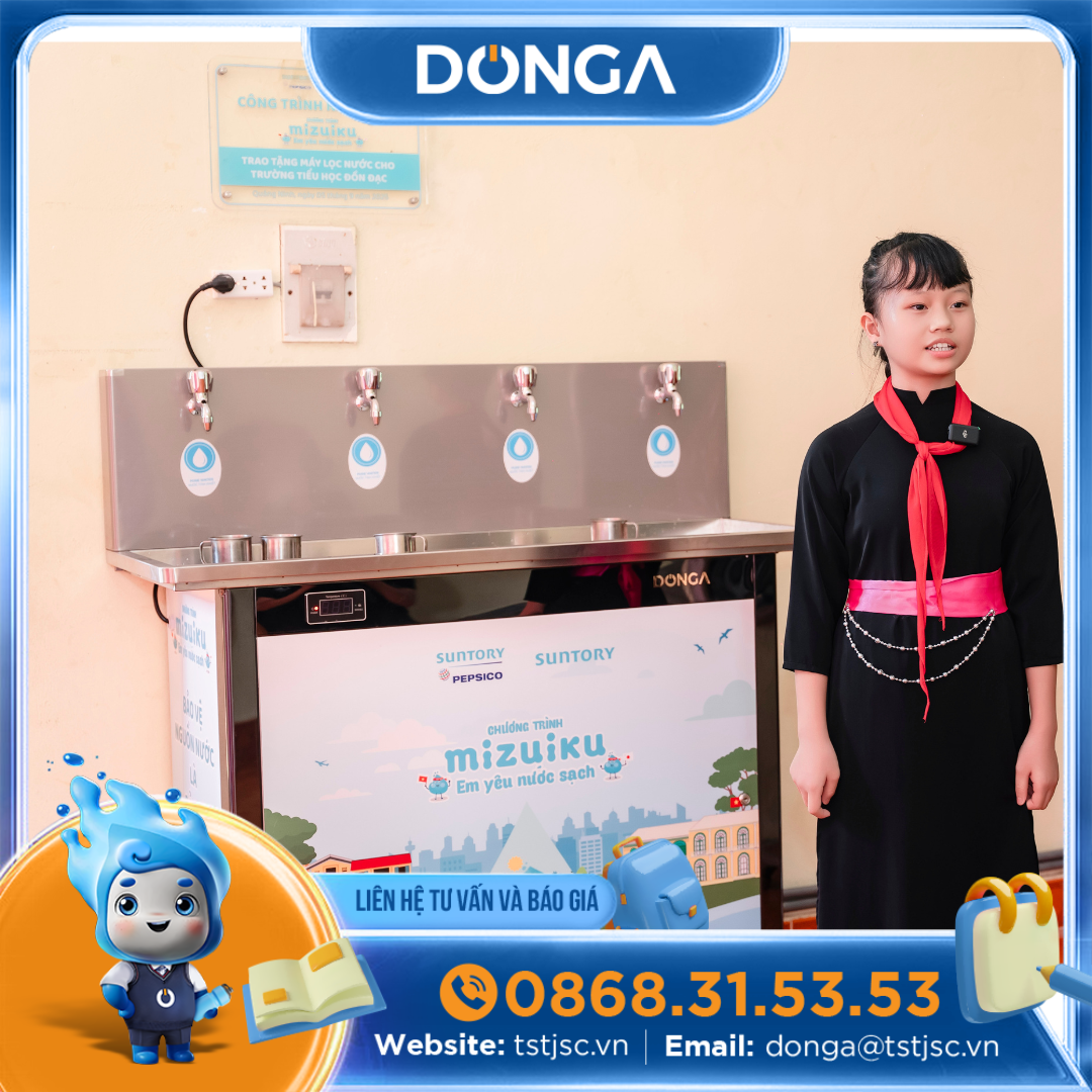 Với sứ mệnh nâng cao nhận thức về bảo vệ tài nguyên nước và cải thiện môi trường học đường, chương trình “Mizuiku – Em yêu nước sạch” tiếp tục hành trình ý nghĩa của mình tại tỉnh Quảng Ninh. Nổi bật trong chuỗi hoạt động này là dự án trao tặng máy lọc nước học đường Đông Á DAD-4S cho Trường Tiểu học Đồn Đạc và Trường Tiểu học Bình Liêu.