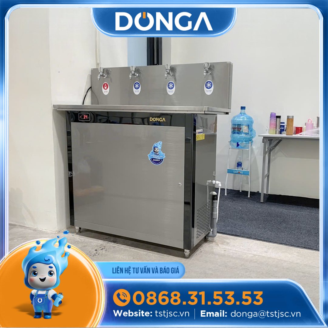 - Đa dạng nhiệt độ: Cung cấp nước Nóng (để pha trà, cà phê, mì gói), Lạnh (giải khát) và liên tục, đáp ứng mọi nhu cầu cá nhân của nhân viên trong mọi điều kiện thời tiết và công việc.