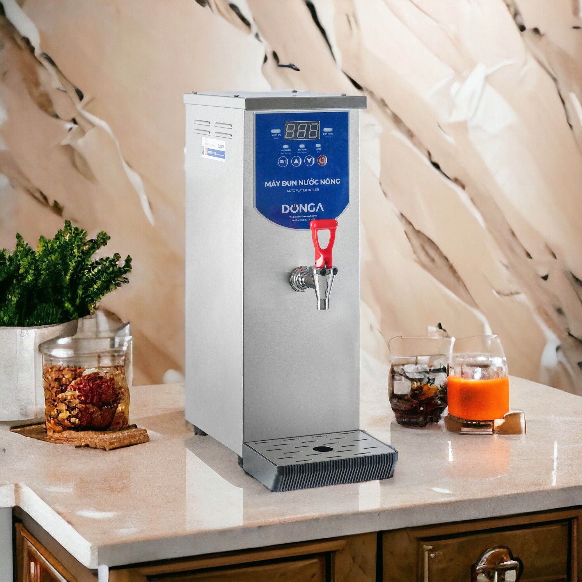 Với thiết kế nhỏ gọn, màu sắc tinh tế, máy đun nước nóng sẽ không chiếm quá nhiều diện tích là sự lựa chọn lý tưởng cho các nhà hàng, khách sạn, quán cafe, bếp ăn công nghiệp... Máy đun nước nóng tự động có khả năng giữ nóng liên tục và đun nước tự động, bạn có thể sử dụng nước nóng bất cứ lúc nào.